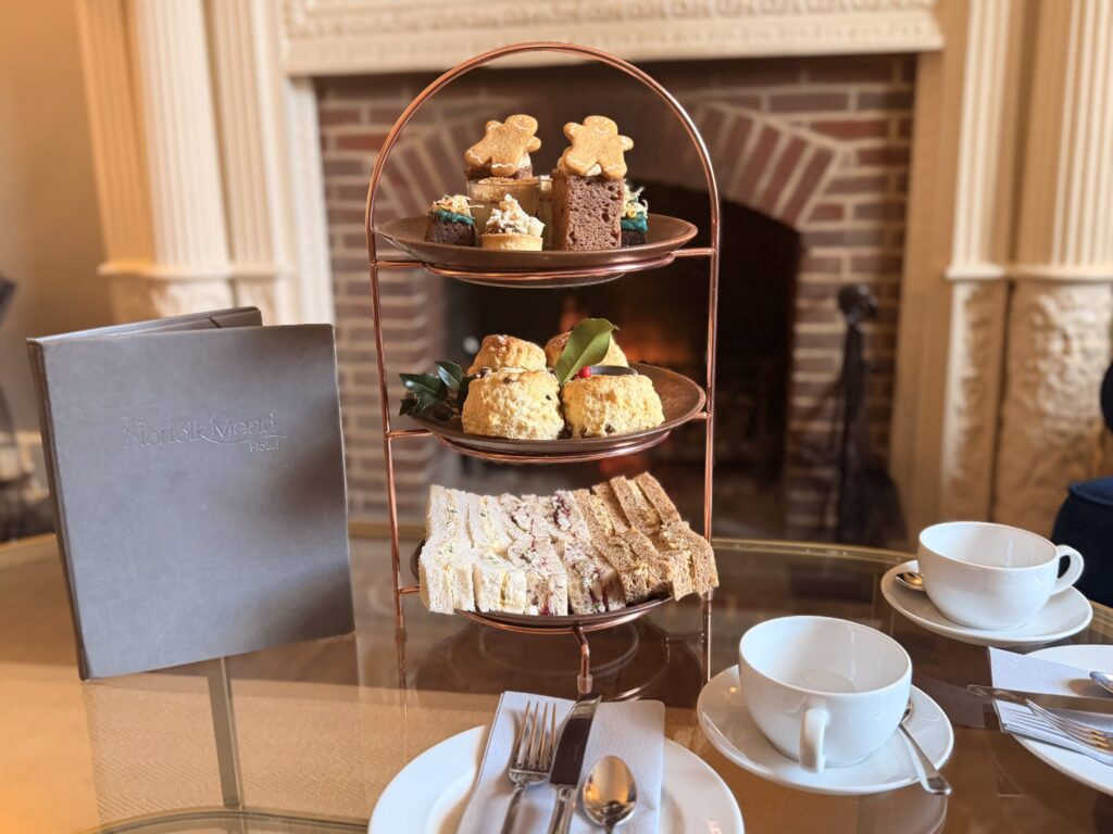 Tucked beside Norwich Cathedral, this historic hotel serves a Christmas afternoon tea with a distinctly traditional feel. Known as one of the oldest hotels in the UK, it brings a sense of heritage to the experience, blending old-world charm with festive indulgence. The Christmas menu is generous, thoughtfully crafted and full of nostalgic flavours. Scones arrive warm, cakes are beautifully decorated, and the savouries bring a satisfying and seasonal twist. Enjoying afternoon tea here during December feels a little bit like stepping back in time, surrounded by centuries of history while tucking into beautifully made seasonal treats.