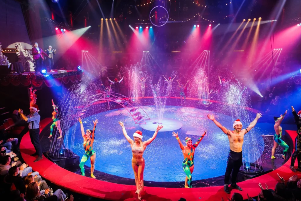 One of the most talked-about features of the Christmas Spectacular is the water show element. At key moments the circus ring transforms into a shimmering stage for synchronized swimmers and flowing fountains that bring a sense of wonder to the performance. This vibrant spectacle of water and movement is a signature part of the show and something that sets it apart from many other seasonal productions. It adds depth and drama to an already dynamic programme and is a highlight for both children and adults.