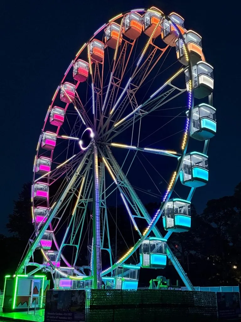 One of the most magical elements is the way the showground comes alive after dark. The lights illuminate everything. From the maze to the wheel, the rink to the rides, every corner seems to sparkle. The Observation Wheel’s LED light show is a highlight. It is a mesmerising fifteen-minute display of colour that choreographs beautifully against the winter night sky. It is a moment for pausing, looking up and letting the wonder sink in.